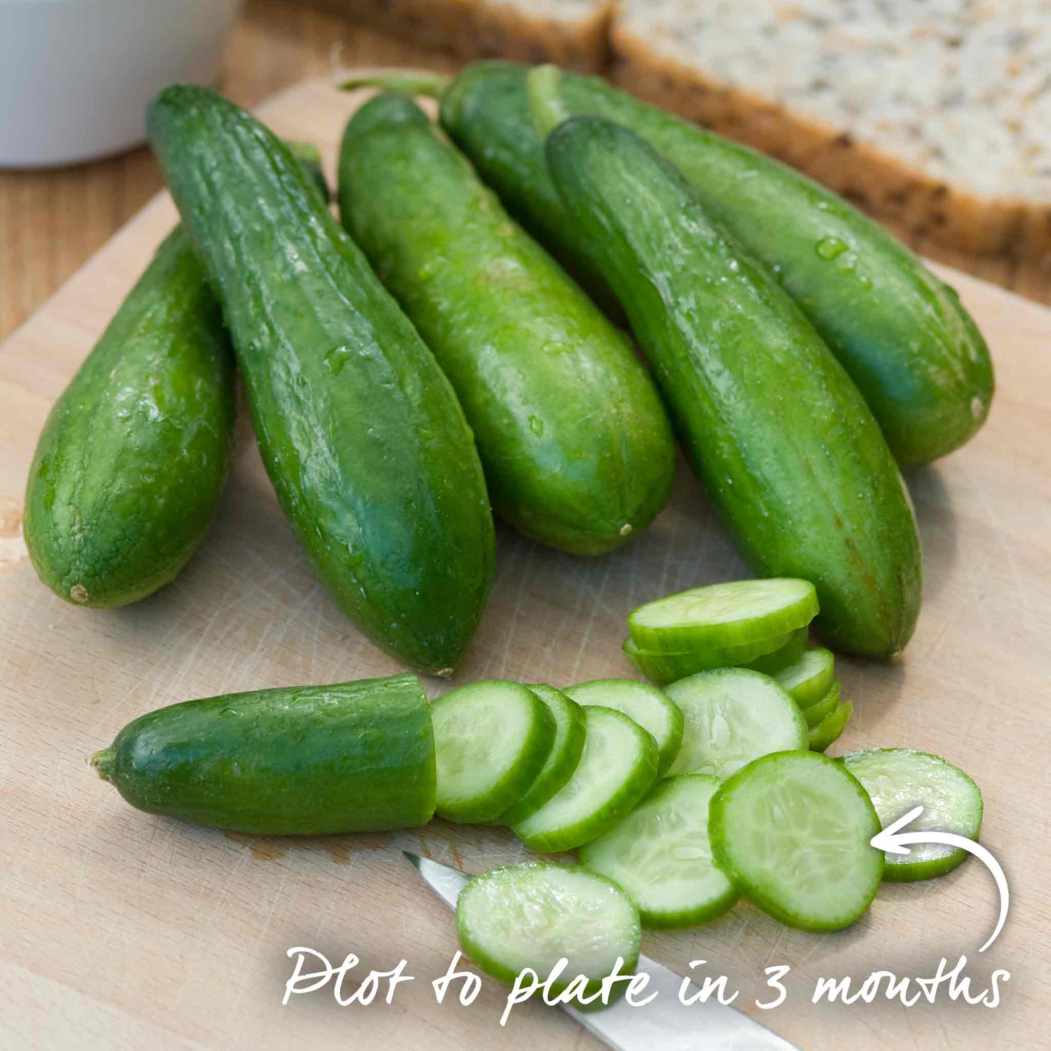Grow Mini Munch F1 Hybrid, it's a delicious, thin-skinned and very heavy-cropping variety. A great snack at any time of day, and perfect for popping into lunch-boxes. Pick the fruits when 8cm (3in) long (like gherkins) or leave them to mature into full-size cucumbers!