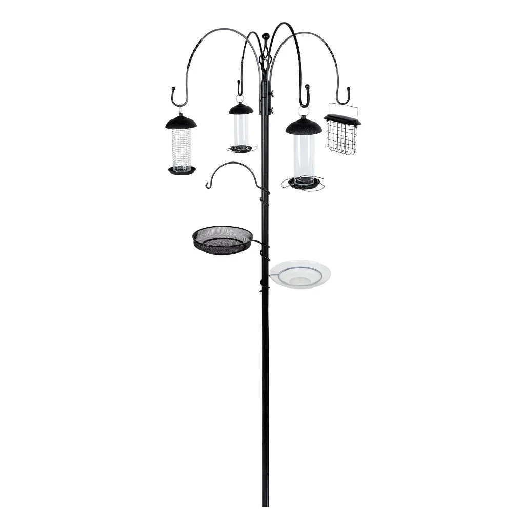 Gardman Complete Feeding Station Kit includes all the accessories and feeders you need to bring a wide variety of birds to your garden. It features a heavy duty, easy to assemble design with 5 hooks to hang your feeders from. The kit includes quick fitting accessories including a medium bird bath and feeding tray with support rings.