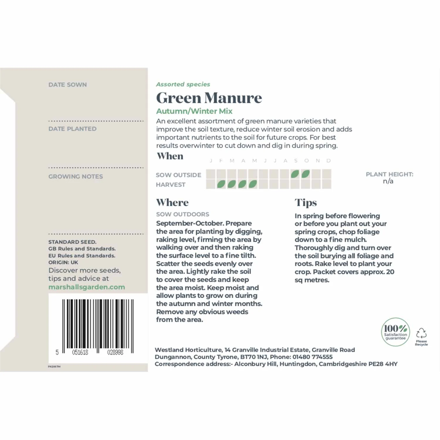 Suitable for all soil types and easy to grow, this mix will cover approximately 20m², making it a practical and eco-friendly choice for preparing your garden for future harvests.
