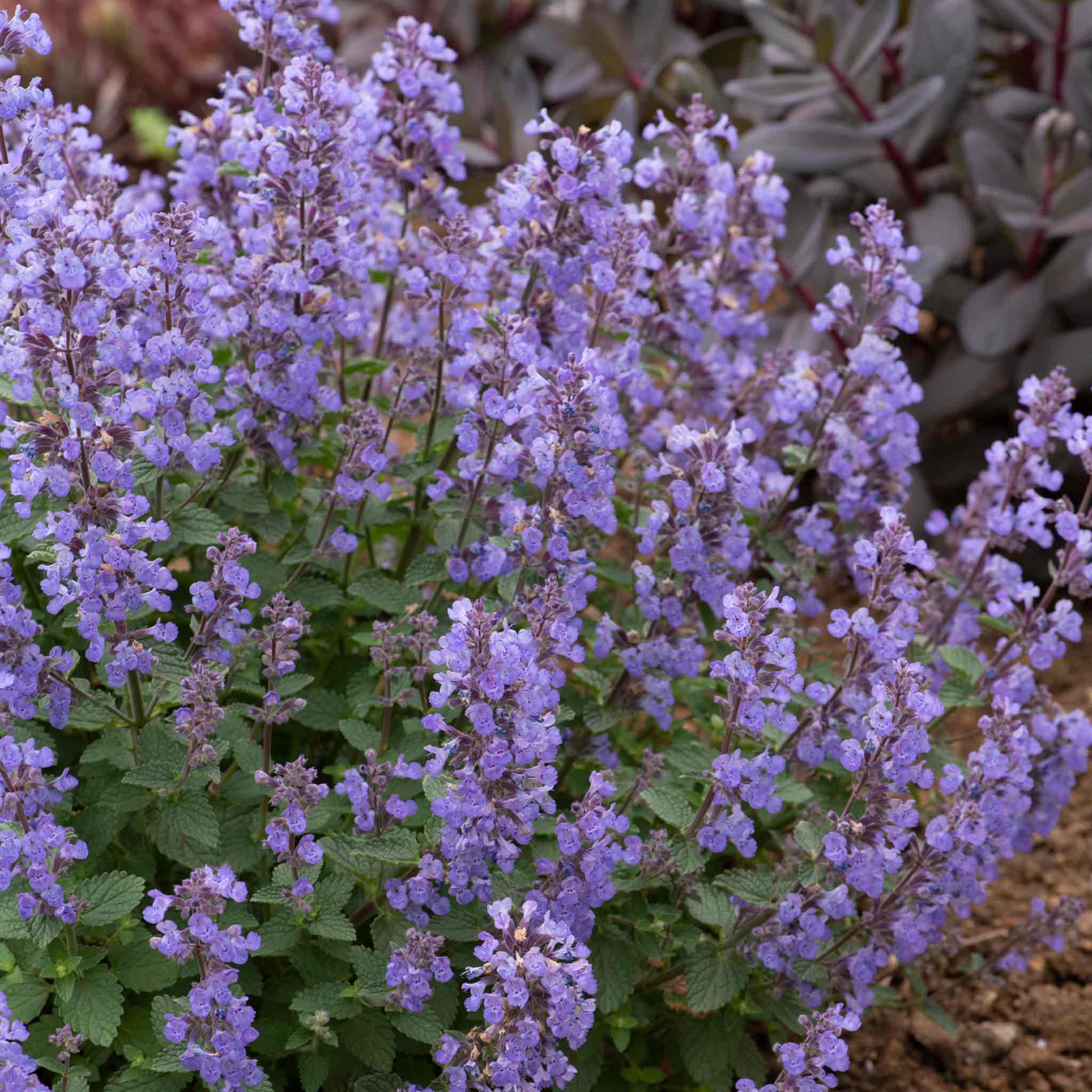 Award-winning Nepeta âPurssian Blueâ forms compact mounds of aromatic grey-green foliage smothered in blue flowerspires for months in summer and autumn. The low mounds typically spread to twice their initial width by their second year. A holder of the prestigious RHS Recommended: Award of Garden Merit, this reliable perennial is drought-tolerant, low-maintenance and loved by bees!