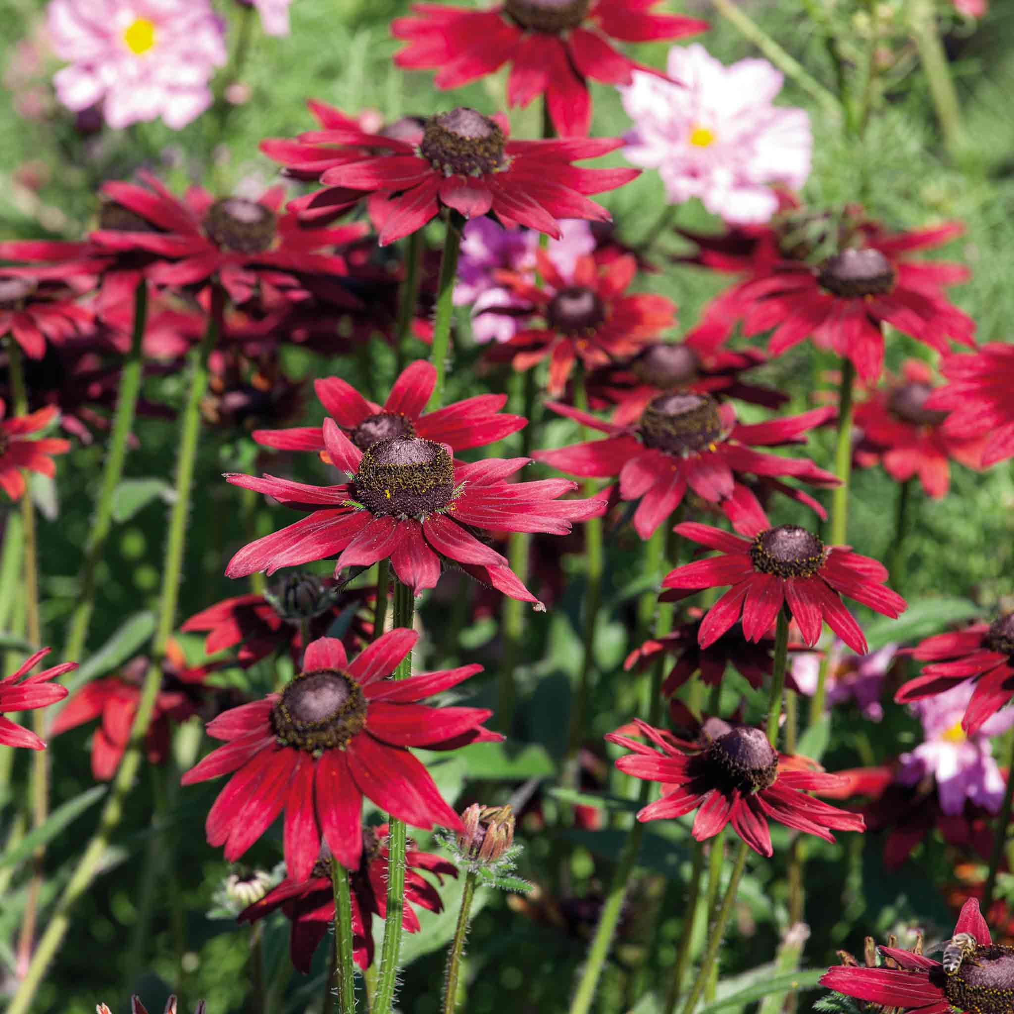 Stunning Rudbeckia âCherry Brandyâ is the worldâs first red rudbeckia, producing abundant cherry-red flowers on upright stems all summer long. This robust performer provides superb colour for borders and large containers.